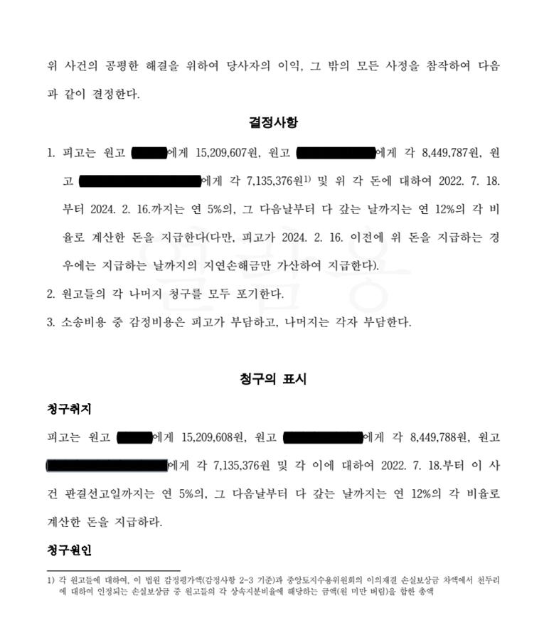결국 제 주장이 받아들여졌고, 분할 이전의 형상과 도로조건을 기준으로 법원감정을 실시할 수 있었으며, 이의재결 보상액 대비 18% 증액된 결과를 얻을 수 있었습니다.